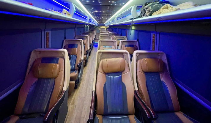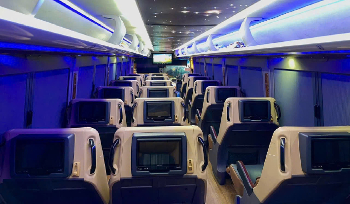 Xe ghế ngồi: Xe từ 30 đến 45chỗ tùy lượng khách, xe đời mới máy lạnh, đón khách theo chương trình. Mỗi đợttối thiểu 25 khách/đợt. Trường hợp không đủ slk thì được dời sang lịch khởihành tiếp theo. Xe đời mới máy lạnh (25 – 28 khách xe 30c, 30 – 33 khách xe35c, trên 40 khách xe 45c), đón khách theo chương trình.