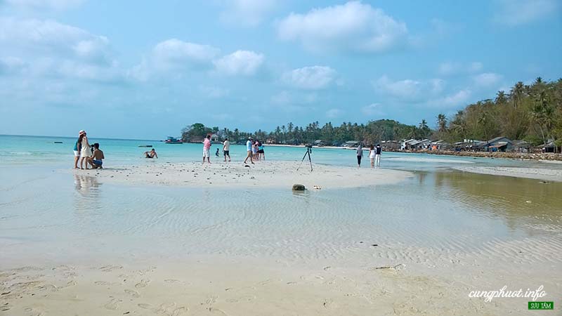 Lần theo con đường quanh đảo chừng vài km, đập vào mắt chúng tôi là bãi Cây Mến với hàng dừa thẳng tắp. Nước biển trong vắt. Đây là bãi tắm ưa thích của nhiều du khách đến với Nam Du. Hòn Củ Tron còn rất nhiều bãi tắm đẹp, nhưng do thời gian hạn chế, chúng tôi chỉ chạy xe một vòng tham quan chứ không khám phá hết được.