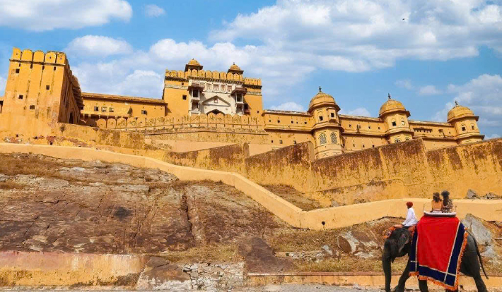 Đoàn tham quan PHÁO ĐÀI AMBER tận hưởng chuyến đi bằng xe Jeep để leo lên pháo đài. Qúy khách có thể thêm trải nghiệm cưỡi voi đi lên Pháo đài (chi phí tự túc).