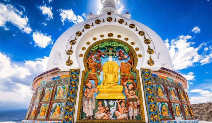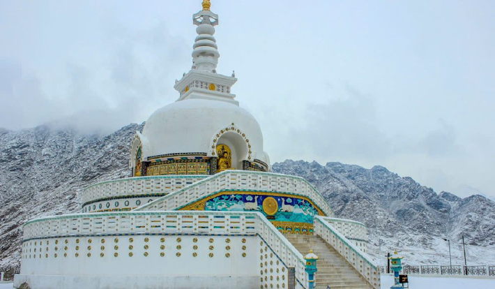 •Tháp Shanti – xây dựng theo kiến trúc của Phật giáo Nhật Bản và nằm trên đỉnh đồi cao 4.267 mét mang đến một cái nhìn toàn cảnh về thành phố Leh Ladakh và vùng núi non xung quanh.