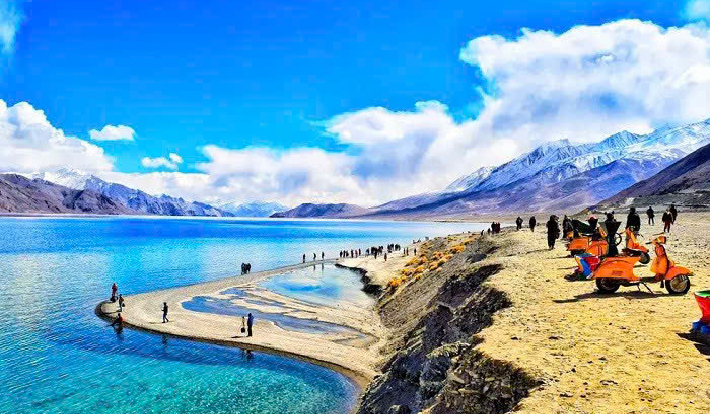 •Hồ Pangong – một trong những hồ nước cao nhất của dãy Himalaya. Hồ Pangong mang một vẻ đẹp của sự bao la với màu xanh ngọc lục bảo in bóng dãy núi tuyết hùng vĩ; là địa điểm quay hình nổi tiếng của bộ phim Bollywood “Ba Chàng Ngốc”.