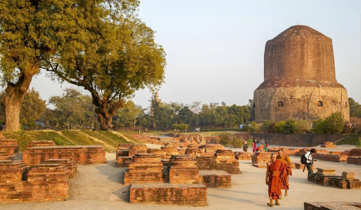 THÁP CHUYỂN PHÁP LUÂN (DHAMEKH STUPA): uy nghi với chiều cao 39 m và rộng 28 m, là một bảo tháp đồ sộ nằm trong khuôn viên vườn Lộc Uyển, bảo tháp có nguồn gốc từ thời tiền Phật giáo, trong đó các nhà tu khổ hạnh được chôn cất trong tư thế ngồi gọi là chaitya. Ý nghĩa của địa điểm linh thiêng này là nơi đánh dấu Đức Phật đã thuyết giảng bài pháp đầu tiên cho năm đệ tử của Ngài sau khi Ngài đạt được giác ngộ.