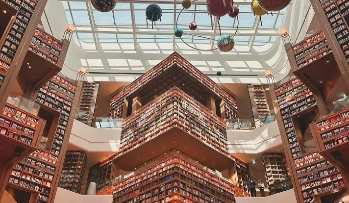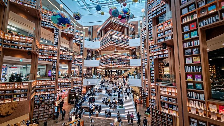 ●Thư viện Starfield Gangnam – là một biểu tượng văn hóa, một điểm đến không thể bỏ qua khi ghé thăm Seoul, Hàn Quốc. Với các kệ sách cao 13 mét, là một không gian công cộng mở cửa đón chào bất kỳ ai đến thư viện để ngồi, thư giãn, nghỉ ngơi và đắm chìm trong hàng ngàn cuốn sách đa dạng. Ánh sáng tự nhiên tràn vào từ cửa sổ mái khiến thư viện trông càng hoành tráng hơn ngoài đời thực