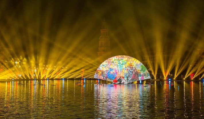 Khu mái vòm ánh sáng đổi màu độc đáo phong cách Clarke Quay (Singapore): Nằm tại khu Mallorca Shop, đây là không gian để du khách tản bộ dưới cây ánh sáng mái vòm đổi màu phong cách Clark Quay.