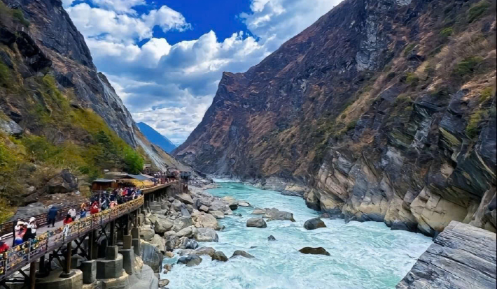 Đến Shangrila, tham quan hẻm núi sâu nhất “Hổ Khiêu Hiệp”, hay còn gọi là hẻm núi Hổ Nhảy (không bao gồm thang cuốn) – là một hẻm núi và danh lam thắng cảnh được hình thành trên dòng sông Kim Sa, một nhánh của sông Dương Tử. Đây là một phần của Di sản thế giới Tam Giang Tịnh Lưu được UNESCO công nhận.