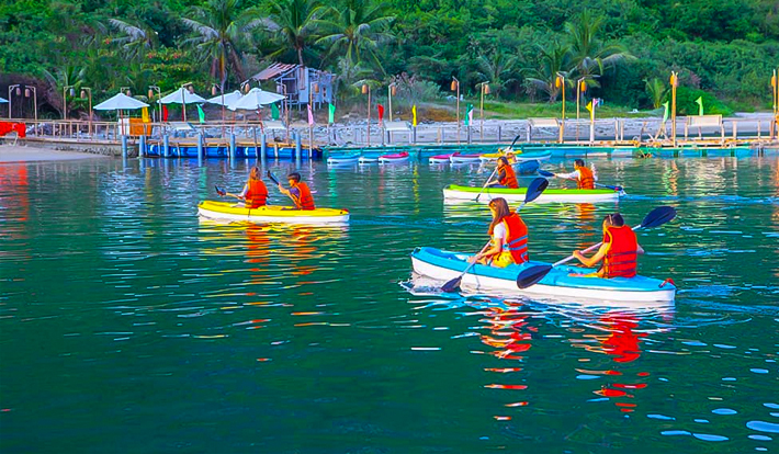 12h00: Đến nhà hàng trên Đảo Con Sẻ Tre, Đoàn dùng buổitrưa, với không gian thoáng đãng, mang đậm chất miền biển, Quý khách thư giãn tạiđảo. Sau khi kết thúc tour Đảo, quý khách nhận phòng Khách sạn 5 sao nghỉ ngơi.